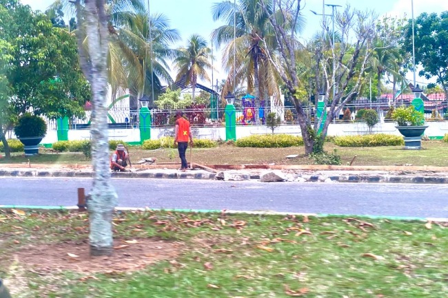 Batanghari, Gatra.com – Pihak kontraktor pemenang proyek Ruang Terbuka Hijau (RTH) Jalur Pedestarian Rumah Dinas Bupati, sepertinya tak mampu membeli alat pelindung diri (APD) untuk sejumlah pekerja.