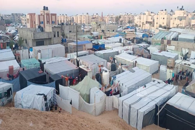 Sebagian besar warga Palestina terpaksa mengungsi akibat pertempuran di wilayah lain di Gaza, dan tinggal di tenda-tenda yang padat atau berdesakan di apartemen.